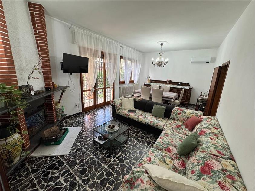 Internamente la villa è così composta: ingresso, grande zona giorno con zona pranzo, cucina abitabile, disimpegno, tre camere da letto matrimoniali e due bagni.