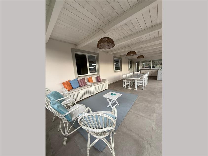 PIANO PRIMO: ingresso, soggiorno, zona pranzo e cucina, disimpegno, tre camere da letto matrimoniali, due bagni ed una splendida terrazza arredata per il living all'aperto.