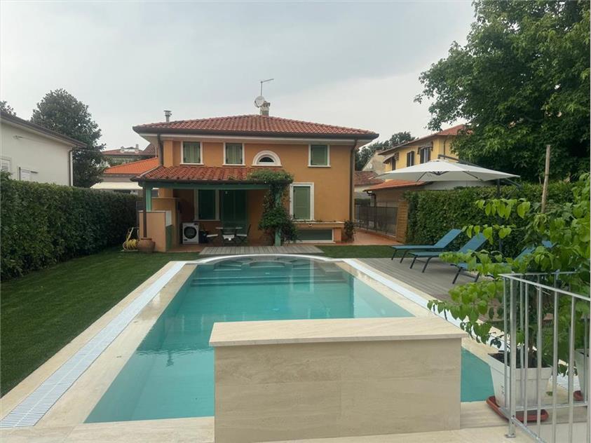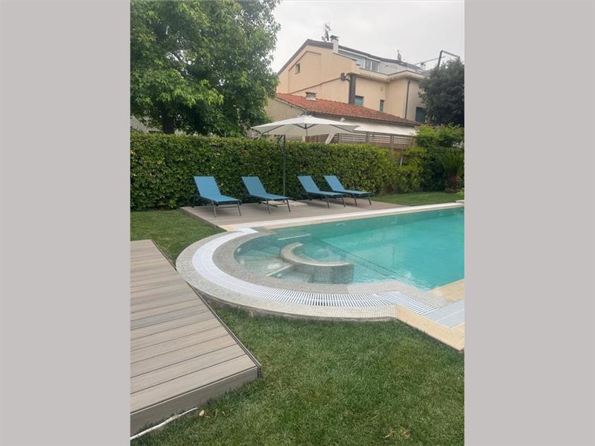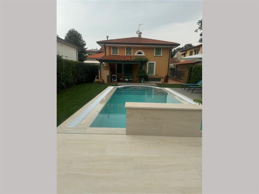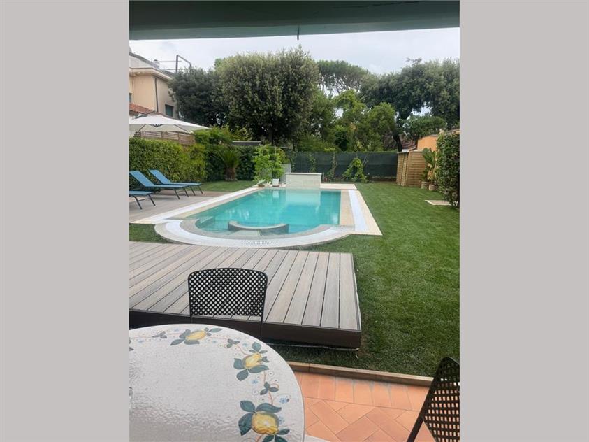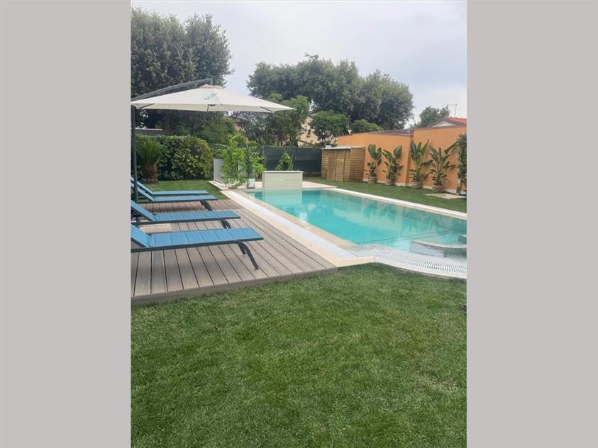 RIF A221 – Marina di Pietrasanta, località Fiumetto, splendida villa singola disposta su di un unico piano, oltre i piani mansardato e seminterrato, ubicata a pochi mt. dal mare, con ampio giardino attrezzato, piscina con solarium ed area dedicata al parcheggio delle auto.