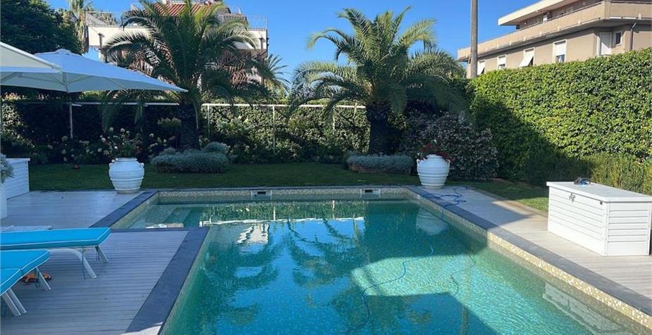 RIF 898– Splendida villa di recente costruzione, ubicata in pieno centro ed a due passi dal mare. Disposta su due piani fuori terra e circondata da giardino di proprietà, la proprietà è attu continua ...