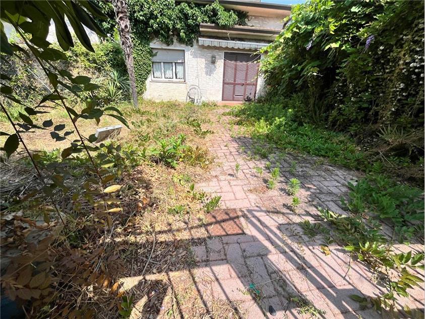 Porzione di villa da ristrutturare, disposta su di un unico piano fuori terra con giardino, all'interno del quale insiste un'area dedicata al parcheggio auto, nello stato attuale composta da: