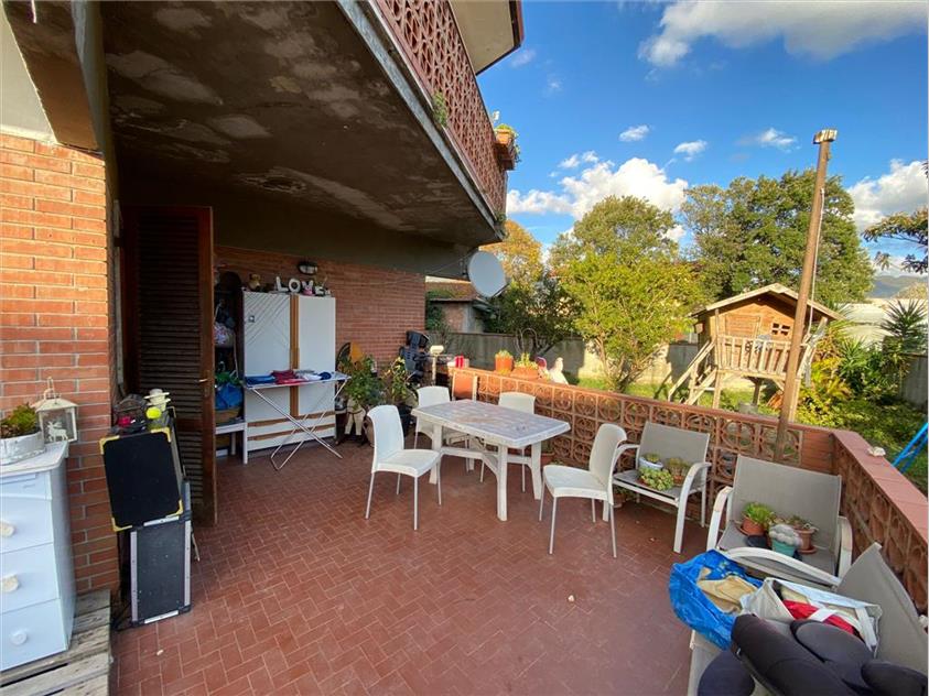 PIANO TERRA: ingresso con ampia terrazza esterna attrezzata per il living all'aperto, soggiorno, cucina, due camere da letto matrimoniali e un bagno.