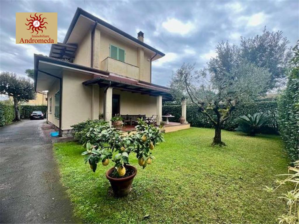 RIF 870 – Alle spalle della zona centrale, porzione di villa quadrifamiliare esposta lato mare, di circa 195 mq., con giardino attrezzato e posti auto; disposta su due piani fuori terra, oltre ai piani mansardato e seminterrato, è così composta: