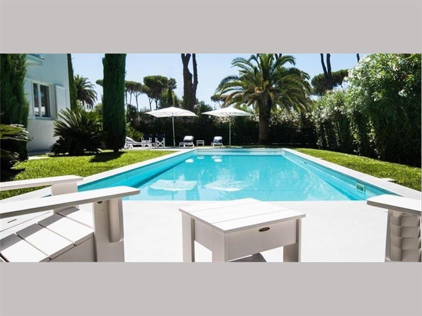 RIF FM161 Fantastica Villa con Piscina nella zona residenziale più prestigiosa della Versilia. Sviluppata su una superficie totale di circa 450 mq e circondata da un meraviglioso giardino di 1600mq, con una grande e soleggiata piscina, la villa presenta finiture estremamente lussuose ed arredamenti di gran pregio curati in ogni dettaglio