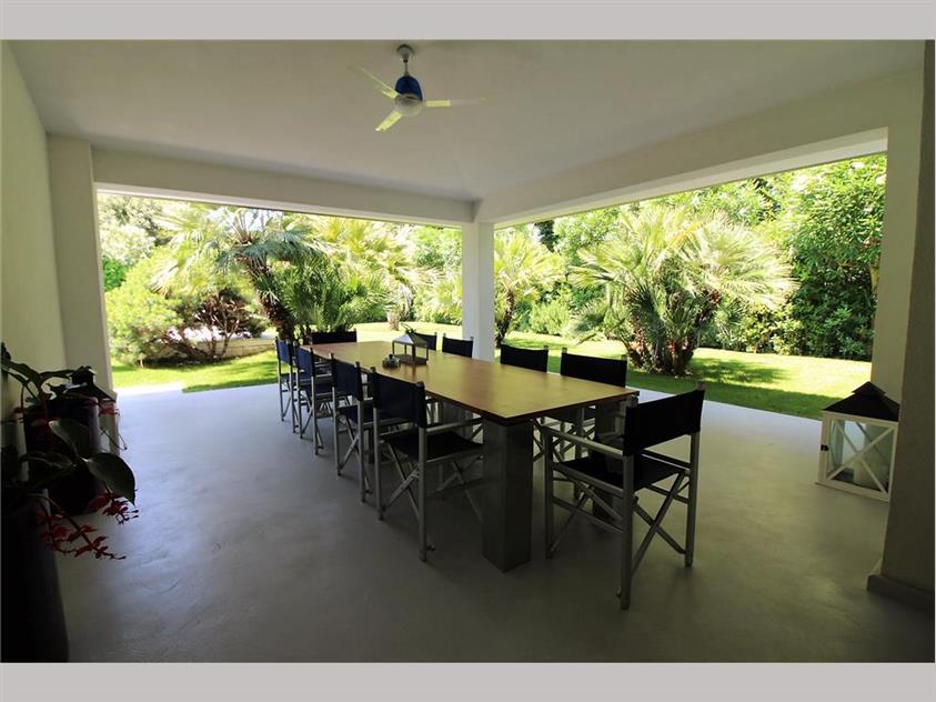 Ampie verande coperte circondano la villa, utilizzate come zona pranzo all'aperto e come soggiorno esterno, oltre a zona lavanderia, garage, cantina e centrale termica.