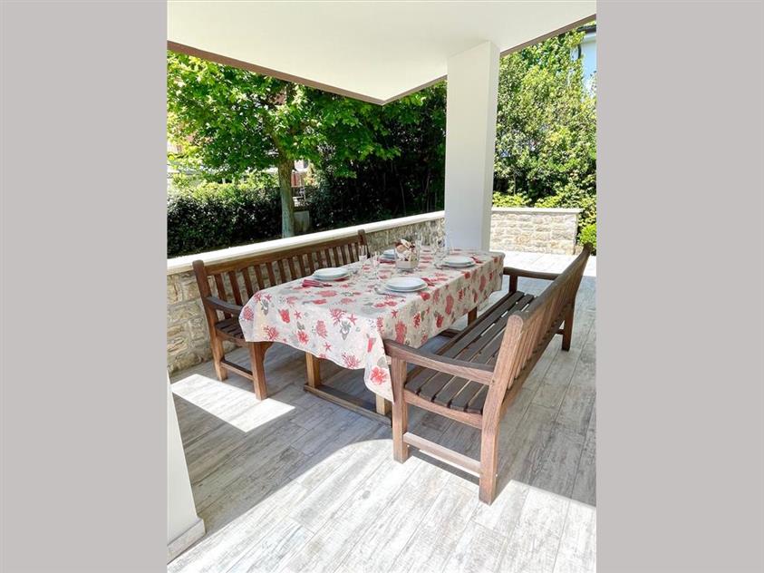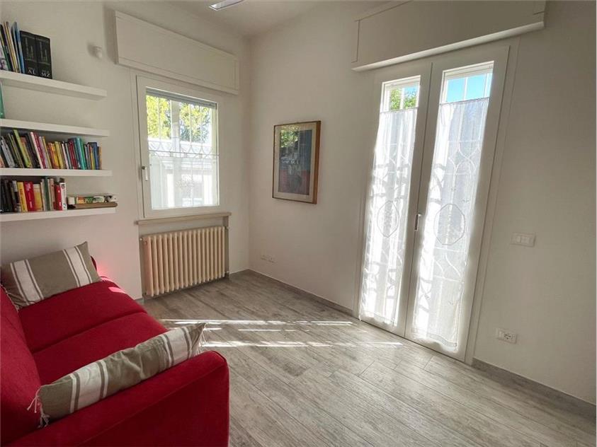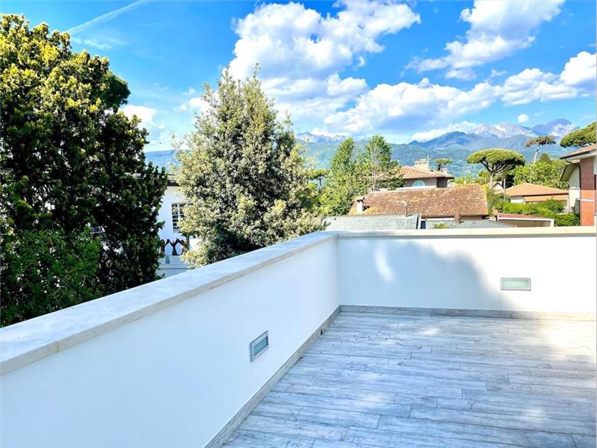 RIF 844 Splendida Villa singola singola a circa 400 metri dalla spiaggia, oggetto di recente ristrutturazione, con domotica per il controllo riscaldamento, tapparelle, illuminazione, citofono, climatizzazione, irrigazione, allarme, gestibile anche in remoto; posizione tranquilla e comoda a tutti i servizi, offre un giardino ben curato, 2 portici coperti , 2 ripostigli, locale tecnico, zona doccia, lavandino e barbecue, cancello carrabile automatico, internamente cosi suddivisa. PIANO TERRA: Ampio e luminosissimo soggiorno da cui si accede in continuità alla cucina ed alla zona pranzo. La cucina è adiacente ad un portico esterno, inoltre, sono presenti 2 camere da letto, entrambe con accesso al giardino, ed un ampio bagno perfettamente integrato nell’armadiatura a muro del disimpegno tra le 2 camere. L’elevata altezza interna (3 metri), l’utilizzo dei toni chiari, la luminosità degli ambienti, donano un notevole senso di spazio e libertà. PIANO PRIMO: anch’esso di altezza superiore agli standard, offre 2 camere doppie: la camera padronale è dotata di bagno en-suite e di terrazza di oltre 30 mq che offre una bellissima vista sulle Alpi Apuane, la seconda camera è corredata di un ulteriore bagno. È presente una lavanderia finestrata attrezzata, di generose dimensioni. C'è poi un sottotetto utilizzabile.