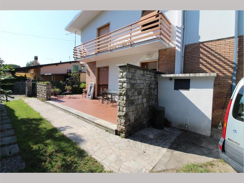 Disposta su due piani fuoriterra e circondata da un soleggiato giardino di circa mq.600 dotato di accesso carrabile su cui insiste una dependance, la villa si compone internamente nel seguente modo: