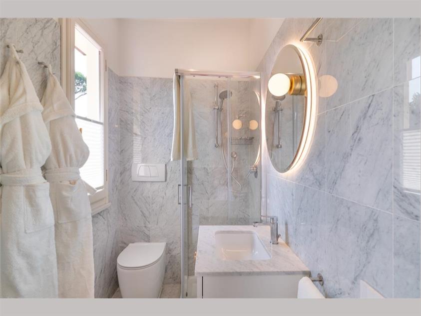RIF 1022 – Splendida villa singola di recentissima ristrutturazione ubicata a pochi metri dal mare, disposta su due piani fuori terra, oltre a terrazze di circa 65 mq. con meraviglioso giardino attrezzato di circa 800 mq., all'interno del quale insiste un'area con quattro posti auto, di cui due coperti.