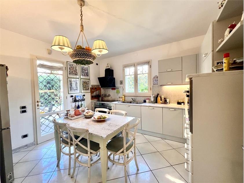 RIF 1067 – Centro storico, a pochi passi dal mare, splendida porzione di villa bifamiliare di circa 200 mq., disposta su due piani fuori terra, oltre il piano seminterrato, con giardino di circa 300 mq. sui tre lati attrezzato di zona relax ed area pranzo esterna, area dedicata a quattro posti auto e ricovero biciclette.