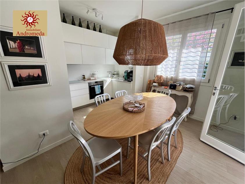 RIF 1006 ESCLUSIVA,Splendida villa singola di nuovissima costruzione, a circa 1 km dalla spiaggia, circondata da ampio giardino dotato di accesso carrabile, in cui insiste una bella dependance, internamente suddivisa nel seguente modo:PIANO TERRA:Soggiorno Cucina abitabile , Disimpegno, Due Camere, Due Bagni,Splendida veranda. PIANO PRIMO: Tre Camere,Bagno, Lavanderia.DEPENDANCE: Due Camere,Bagno.