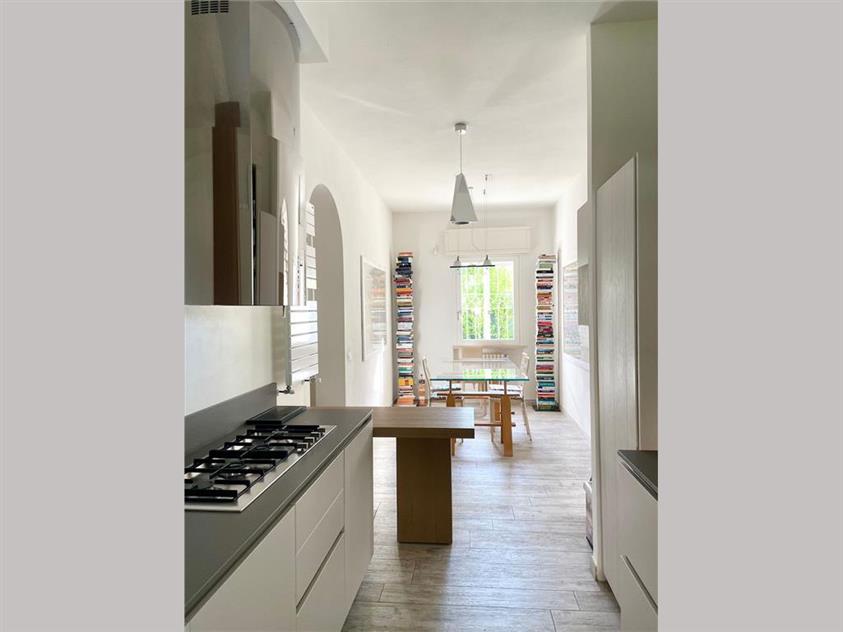 RIF 844 Splendida Villa singola singola a circa 400 metri dalla spiaggia, oggetto di recente ristrutturazione, con domotica per il controllo riscaldamento, tapparelle, illuminazione, citofono, climatizzazione, irrigazione, allarme, gestibile anche in remoto; posizione tranquilla e comoda a tutti i servizi, offre un giardino ben curato, 2 portici coperti , 2 ripostigli, locale tecnico, zona doccia, lavandino e barbecue, cancello carrabile automatico, internamente cosi suddivisa. PIANO TERRA: Ampio e luminosissimo soggiorno da cui si accede in continuità alla cucina ed alla zona pranzo. La cucina è adiacente ad un portico esterno, inoltre, sono presenti 2 camere da letto, entrambe con accesso al giardino, ed un ampio bagno perfettamente integrato nell’armadiatura a muro del disimpegno tra le 2 camere. L’elevata altezza interna (3 metri), l’utilizzo dei toni chiari, la luminosità degli ambienti, donano un notevole senso di spazio e libertà. PIANO PRIMO: anch’esso di altezza superiore agli standard, offre 2 camere doppie: la camera padronale è dotata di bagno en-suite e di terrazza di oltre 30 mq che offre una bellissima vista sulle Alpi Apuane, la seconda camera è corredata di un ulteriore bagno. È presente una lavanderia finestrata attrezzata, di generose dimensioni. C'è poi un sottotetto utilizzabile.