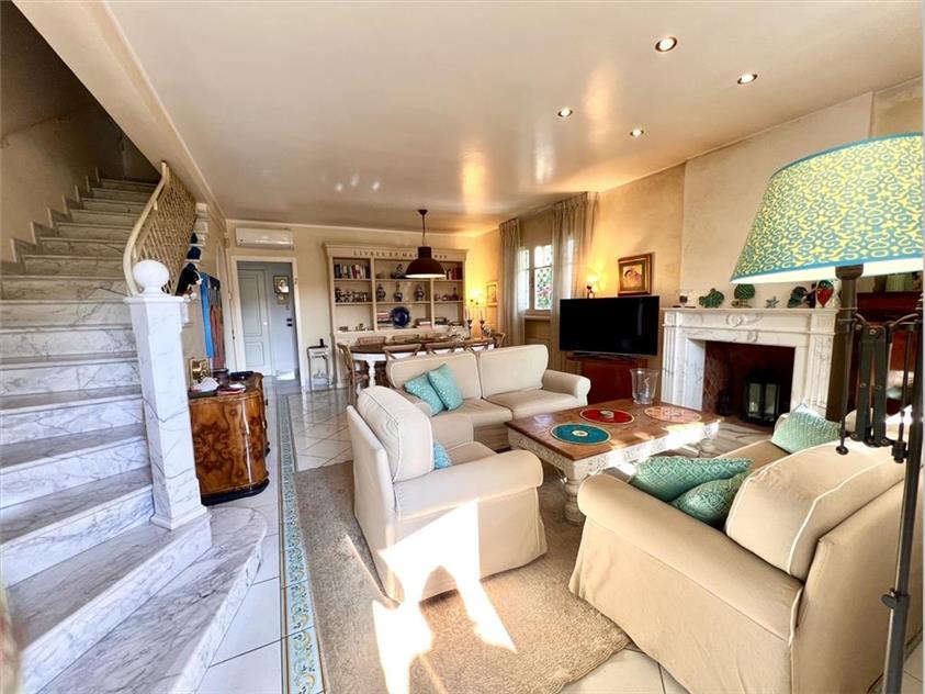 RIF 1067 – Centro storico, a pochi passi dal mare, splendida porzione di villa bifamiliare di circa 200 mq., disposta su due piani fuori terra, oltre il piano seminterrato, con giardino di circa 300 mq. sui tre lati attrezzato di zona relax ed area pranzo esterna, area dedicata a quattro posti auto e ricovero biciclette.