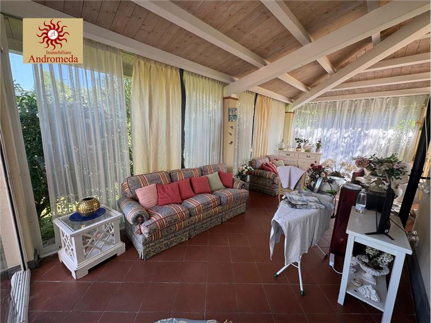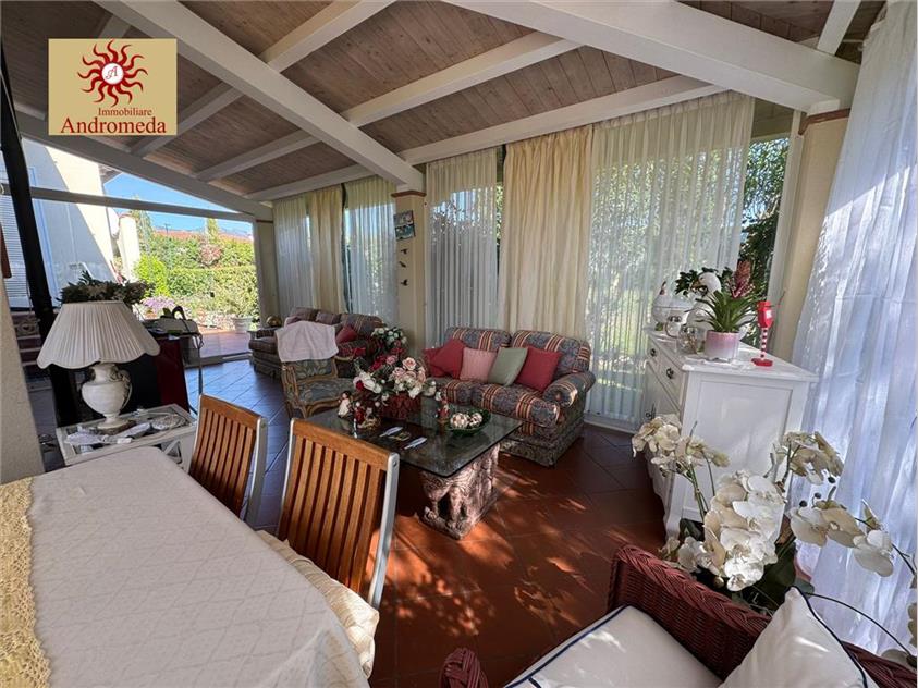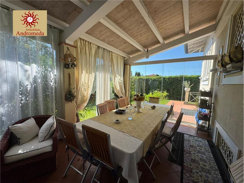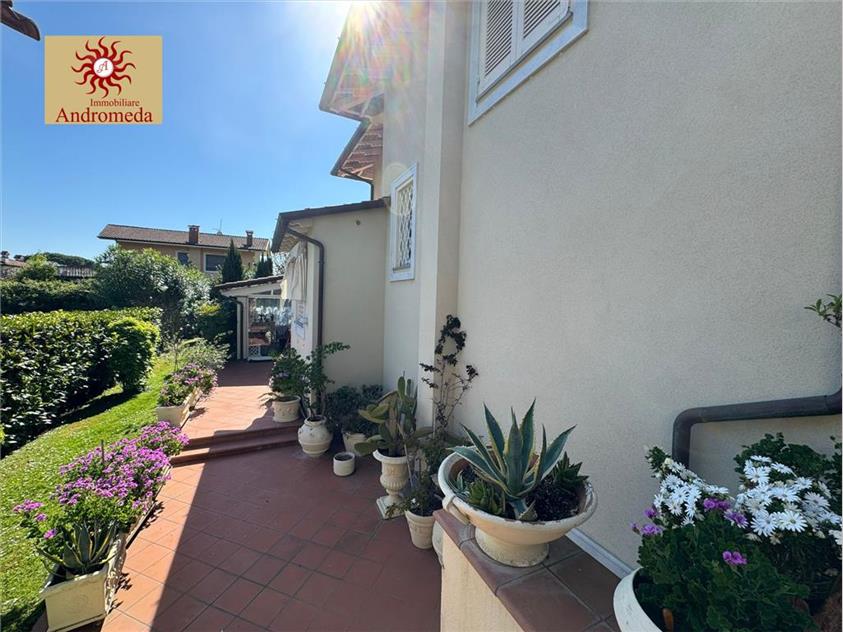 A circa 1 km dalle splendide spiagge di Forte dei Marmi, proponiamo in vendita una raffinata villa singola immersa in un curato giardino privato, perfetto per vivere momenti di relax e convivialità all’aperto. Qui troviamo una splendida veranda a vetri, ideale in ogni stagione, con zona pranzo e accogliente salotto affacciato sul verde.