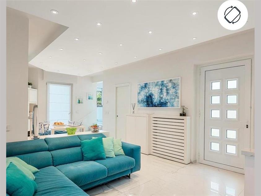 PIANO PRIMO: disimpegno, due camere da letto matrimoniali, una camera da letto singola servite da un bagno e terrazza perimetrale da cui si può godere di un’ottima vista sul mare e sui monti.